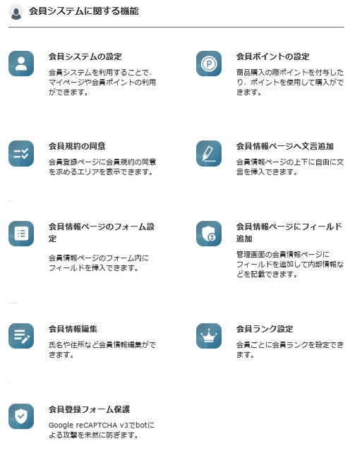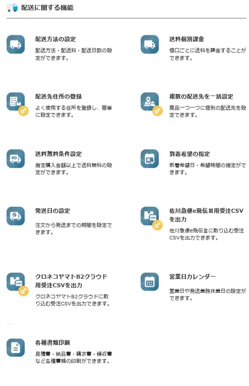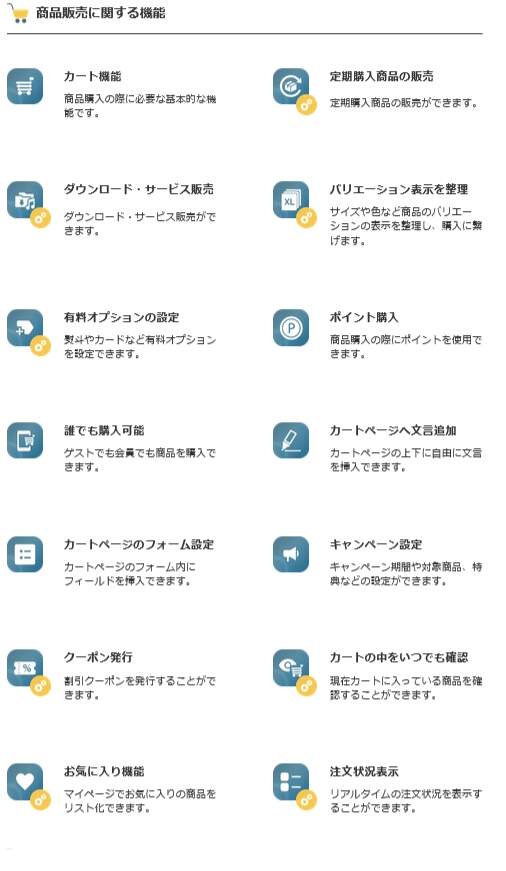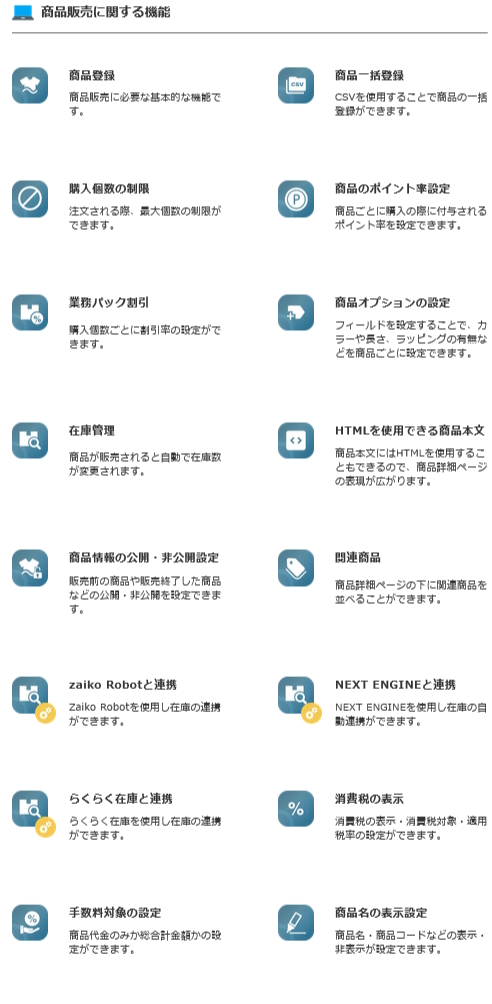 ネットショップ運営に必要な商品登録・販売・注文管理などの機能を多く備えています。